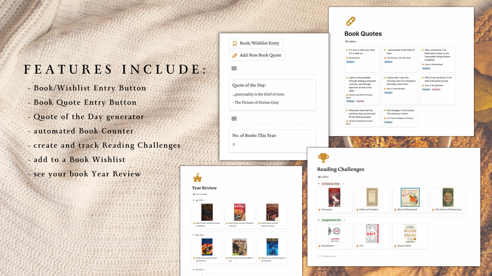 Minimal Reading and Book Tracker Key Features: