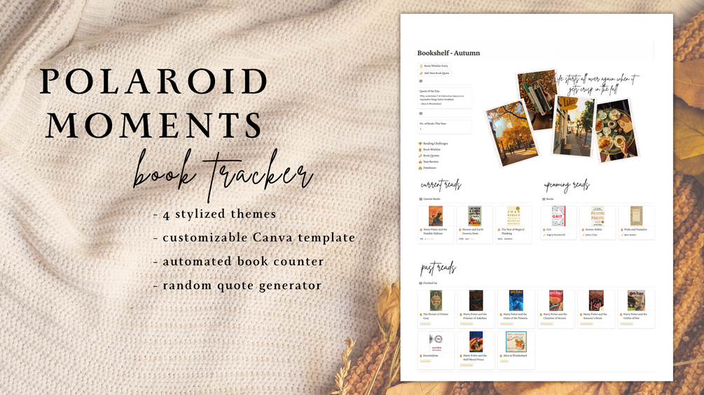 Polaroid Moments Reading and Book Tracker Upgraded Features: